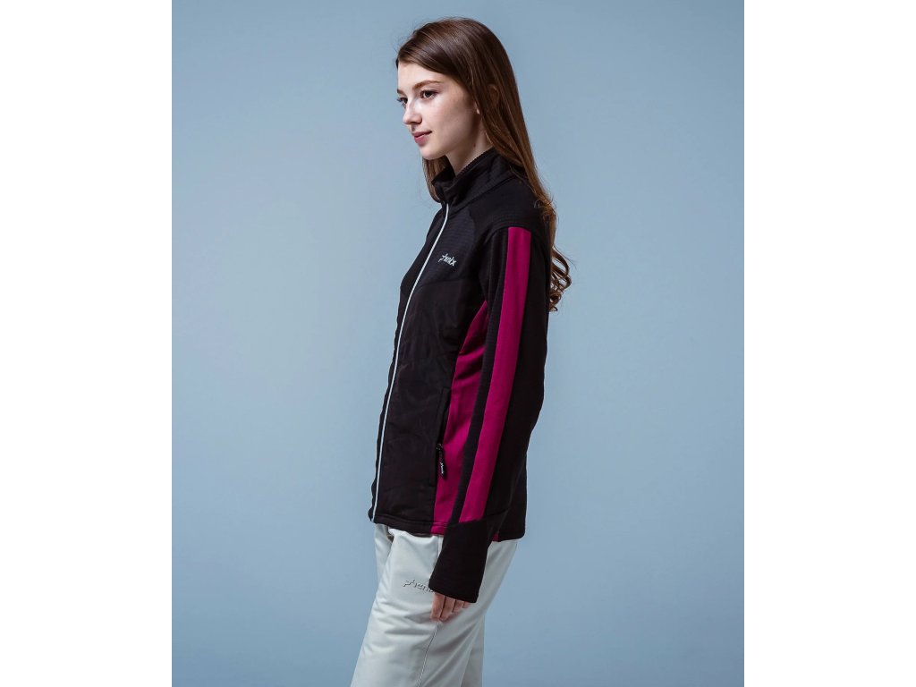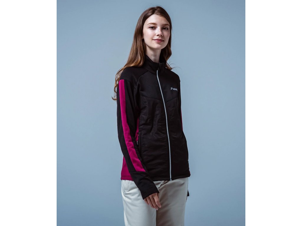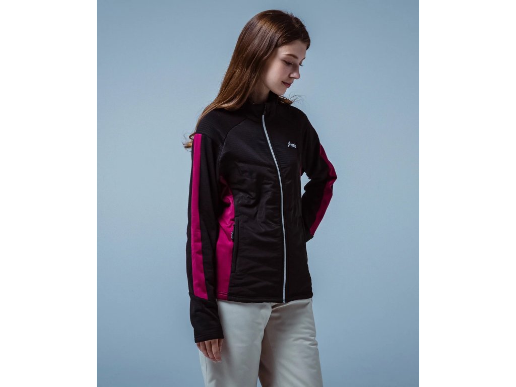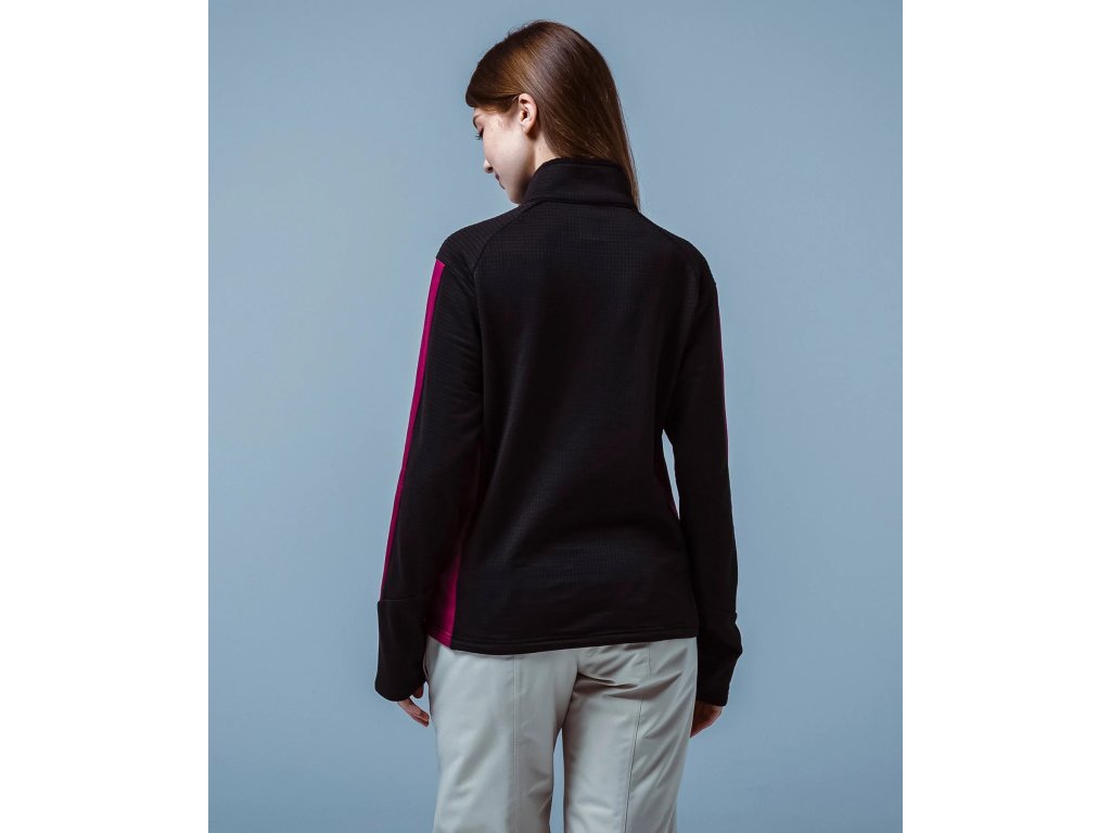 Kombinace mřížkovaného fleecu a 4cestného strečového fleecového úpletu poskytuje výbornou elasticitu a pohodlí při aktivním pohybu. Kontrastní boční panely zvýrazňují ženskou siluetu a dodávají mikině moderní, sportovní vzhled.