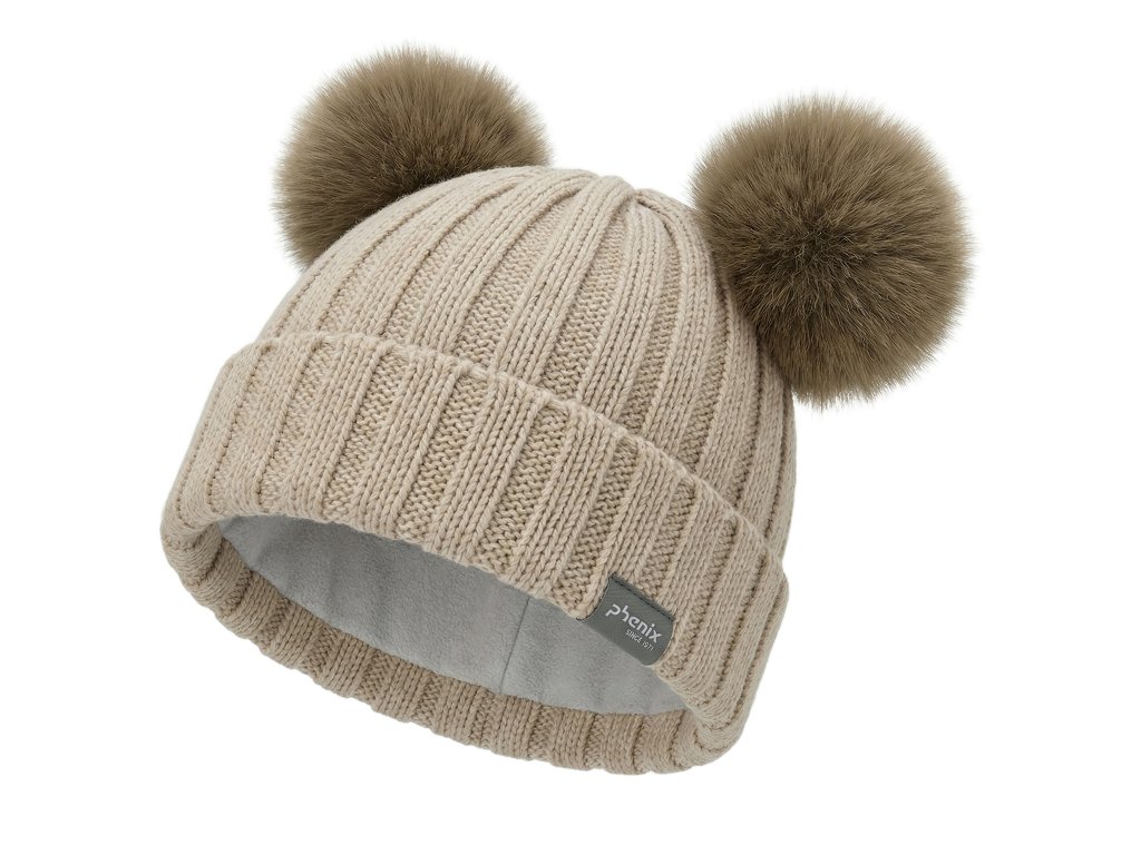 Dětská pletená čepice Phenix Double Pompon Sand Beige