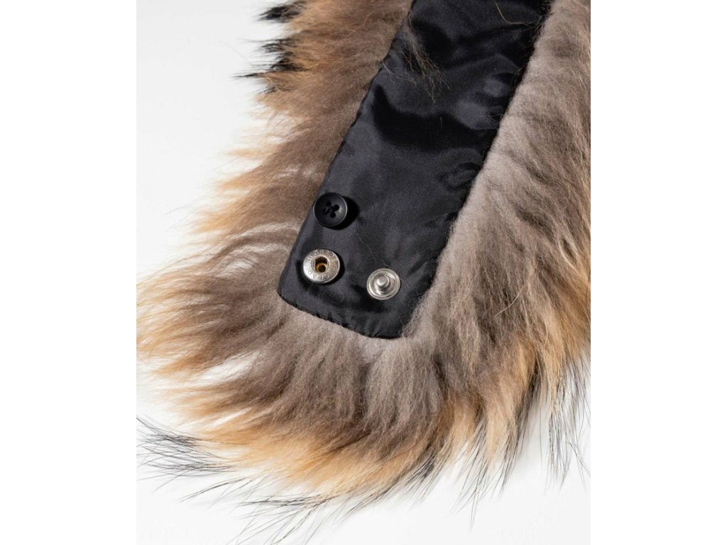 Dámský kožešinový límec z mývala. Kožešina se dá k bundě připnout pomocí druků. Kožešina dokonale doladí Váš lyžařský i volnočasový komplet.