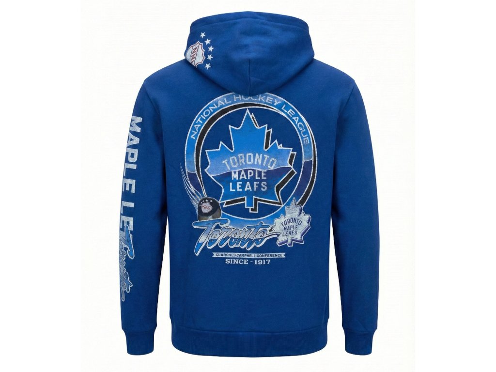 Stylová mikina s kapucí pro fanoušky Toronto Maple Leafs. Na první pohled čistý design zepředu, zato zezadu výrazný „vintage“ motiv – ideální do města, na zápas i na volný čas.