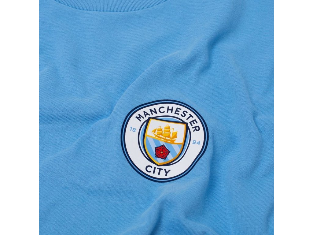 - Klubový odznak Manchester City na hrudi
