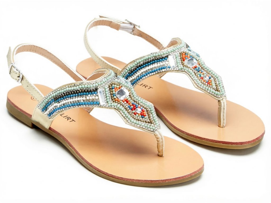 Stylové dámské žabky v mátově zelené barvě zaujmou na první pohled svým ženským vzhledem a ozdobnými detaily. Elegantní provedení se sponou, perličkami a třpytivými kamínky dodává obuvi jemný a atraktivní vzhled, díky kterému skvěle doplní letní šaty, sukně i lehké kalhoty.